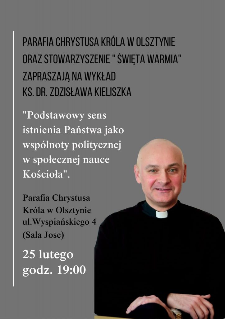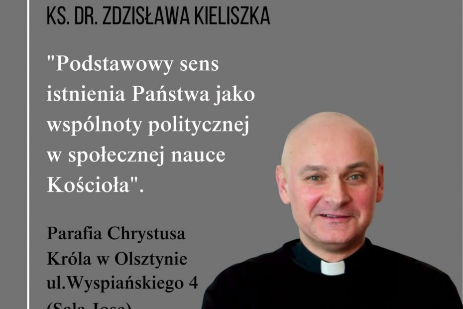 Jest to pierwsze spotkanie z cyklu „Liberalna demokracja a nauczanie społeczne Kościoła”, który rozpoczynamy wykładem Ks. dr. Zdzisława Kieliszka: „Podstawowy sens istnienia państwa jako wspólnoty politycznej w nauczaniu społecznym Kościoła”.